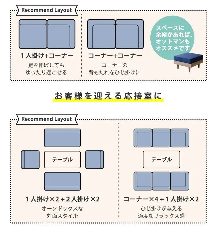 座り心地の良さにこだわったNEO【ネオ】フレキシブルソファ。柔らかなクッションとしっかりとした背もたれが、快適な座り心地を実現します。1P、2P、コーナー、オットマンと、シチュエーションやお部屋の広さに合わせて組み合わせが自由自在。自分だけのオリジナルソファを作りませんか?無駄なスペースを削減するコンパクトなデザインで、お部屋を広々と演出します。シンプルながらも洗練されたデザインなので、どんなインテリアにも合わせやすく、長く愛用できます。 心地よい座り心地だけでなく、ソファの製造・販売にもこだわっています。国内の職人が1つ1つ手作りしており、厳しい品質管理を経て商品をお届けいたします。安心してお使いいただけるように、耐久性や耐久試験なども行っています。長く使い続けることができ、大切なお時間を快適に過ごしていただけます。 心地よいソファに包まれながら、くつろぎのひとときを過ごしませんか?家族や友人との団らんや、自分だけの特別な時間を演出します。忙しい日々の疲れを癒し、ゆったりとしたくつろぎ空間を作り上げましょう。NEO【ネオ】フレキシブルソファがあなたのくつろぎの場を彩ります。 ※ご購入前にサイズをご確認ください。ソファの色味は、写真と実物では多少異なる場合があります。