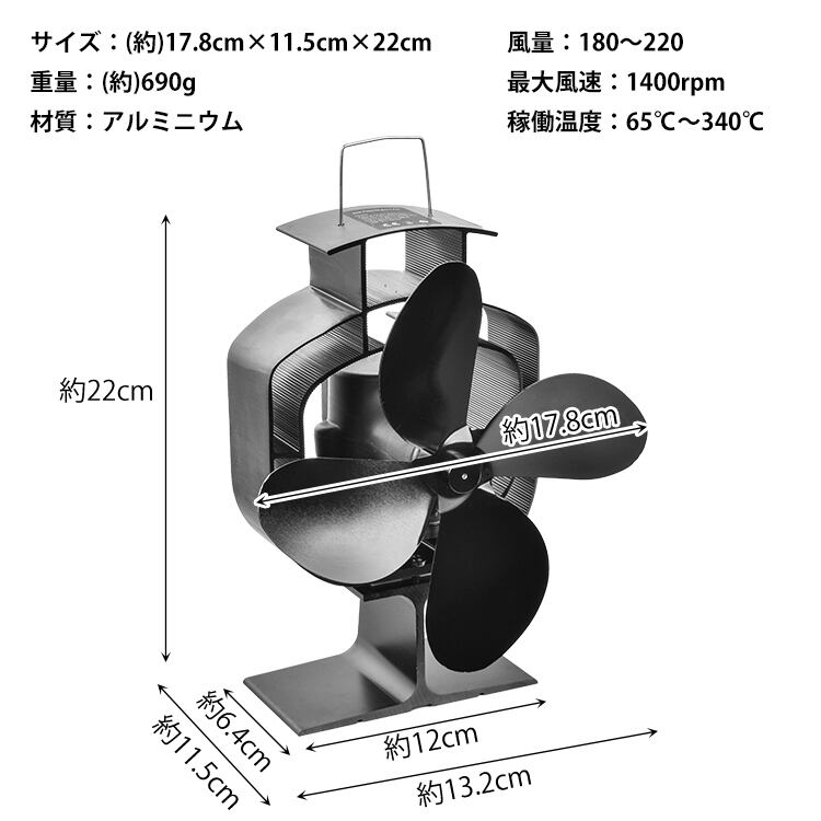 ストーブファン 首振り 4枚 エコファン 電源不要 自動 静音 省エネ 室内 空気循環 薪ストーブ